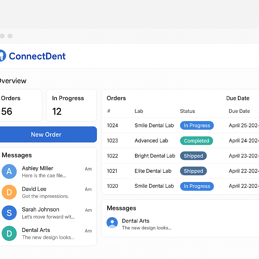 ConnectDent replaces manual workflows with a fully digital platform, enabling real-time order submissions, communication, and progress tracking, which reduces errors and speeds up production.